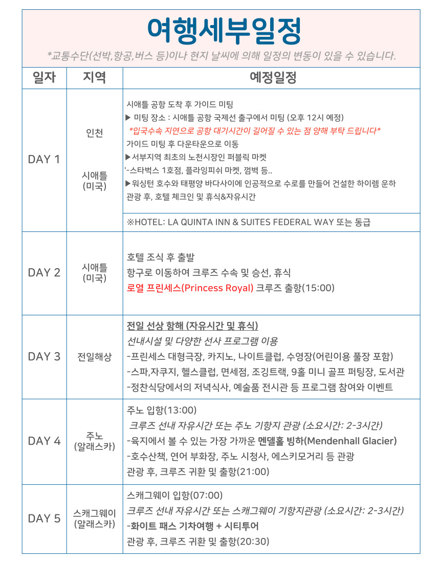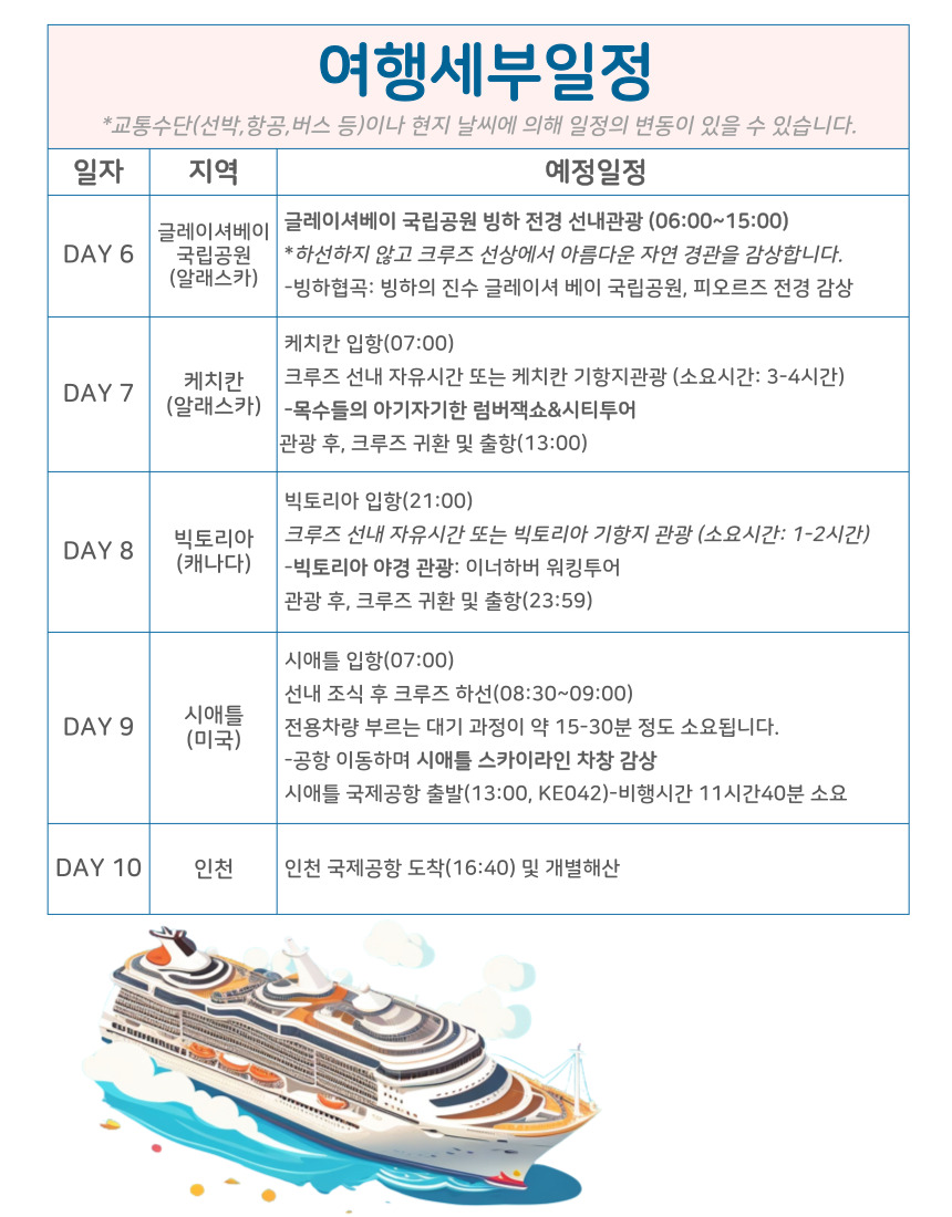 (2026/27년) 출발확정! 알래스카 크루즈 세미패키지(9일)
