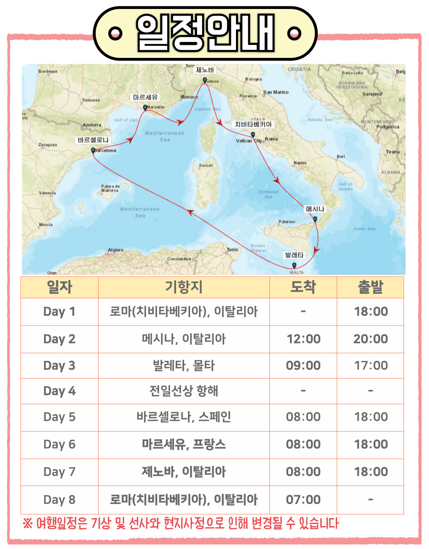 유럽 최대 크루즈로 즐기는 지중해 감성~!