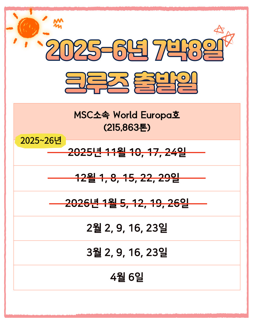 (2025/26년) [로마출발] 세계 최대 크루즈 MSC 월드유로파 지중해 4개국